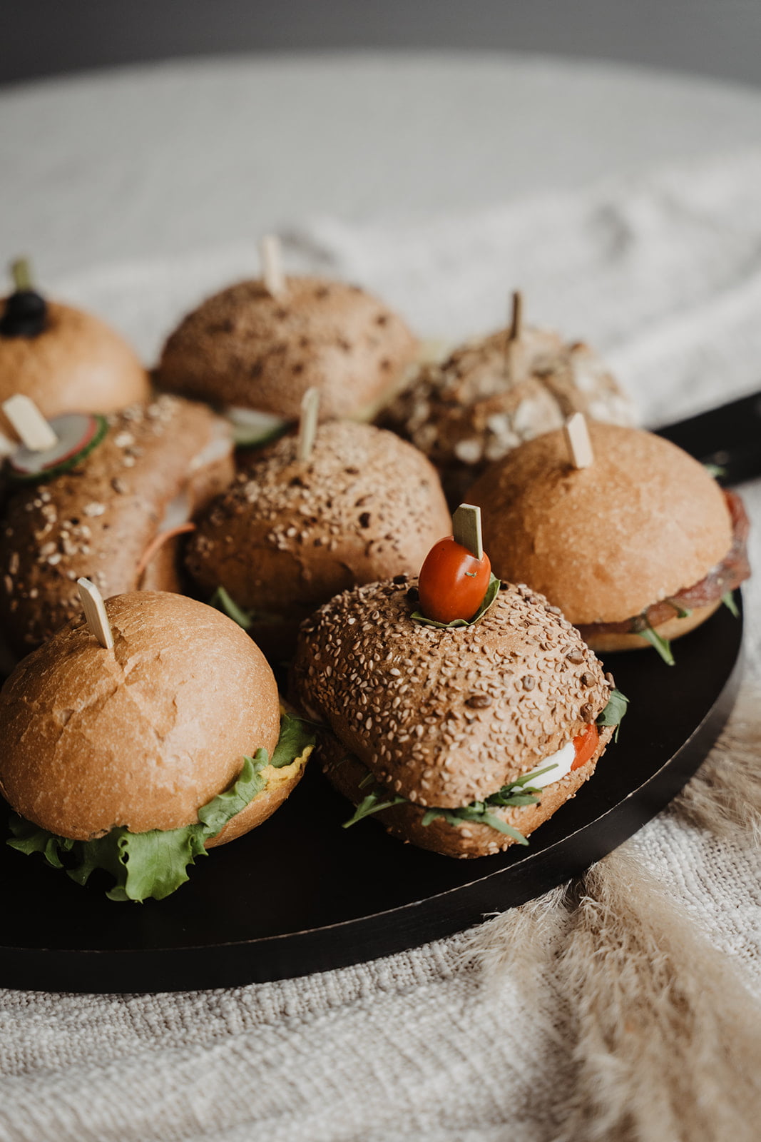 Verschillende rijkbelegde broodjes (met verse groente en dressing). Denk hierbij aan: Gezond, brie, mozzarella, paprikaspread, carpaccio, kipfilet of zalm. Vanaf 8 broodjes te bestellen. (Reken ongeveer 2 broodjes per persoon) Graag 24 uur van te voren bestellen. (anders even bellen)